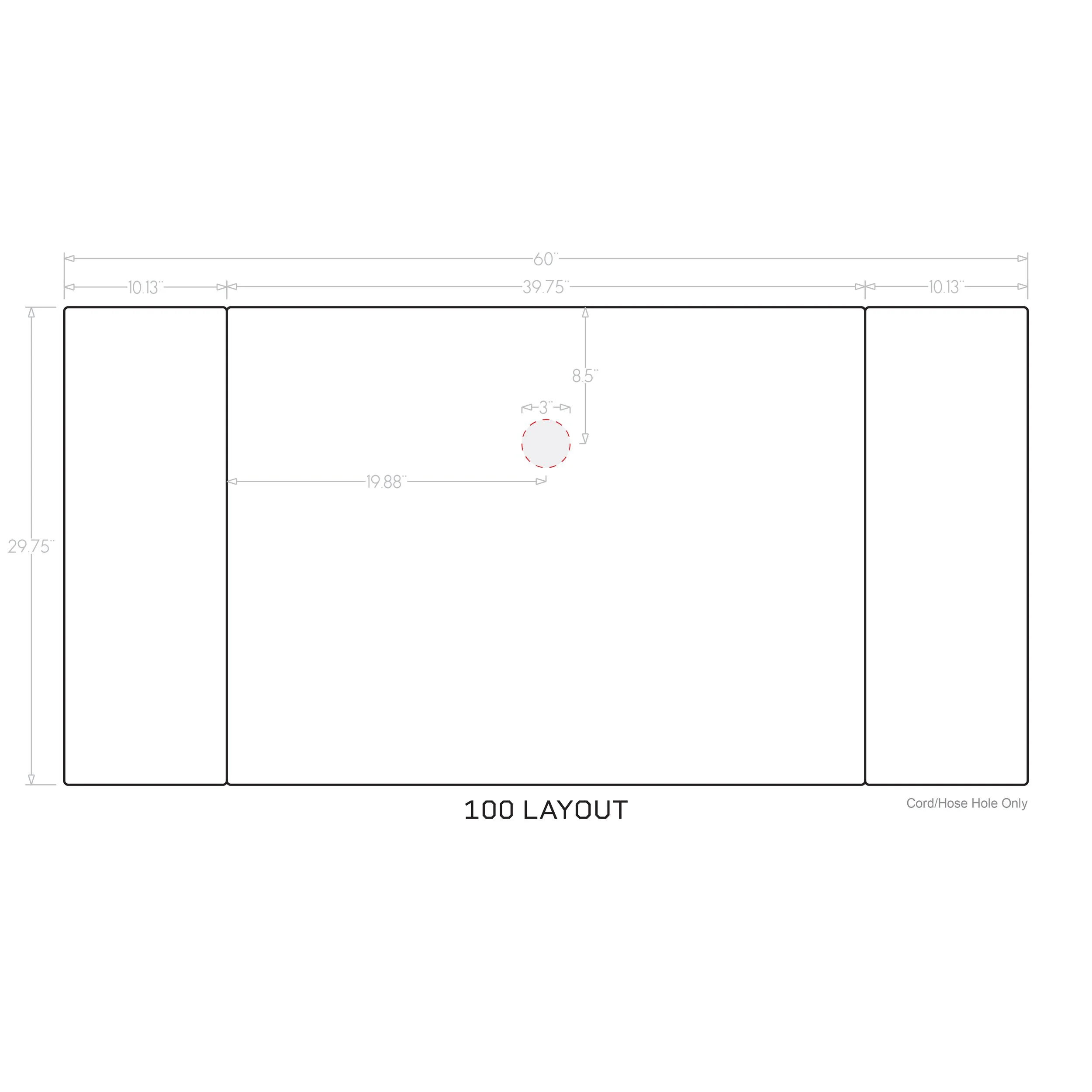 Select a top hole layout that fits your workflow. A top hole configuration must be included with your cart order. The cutouts are sized for the rinser, knockbox, and sink/faucet.
