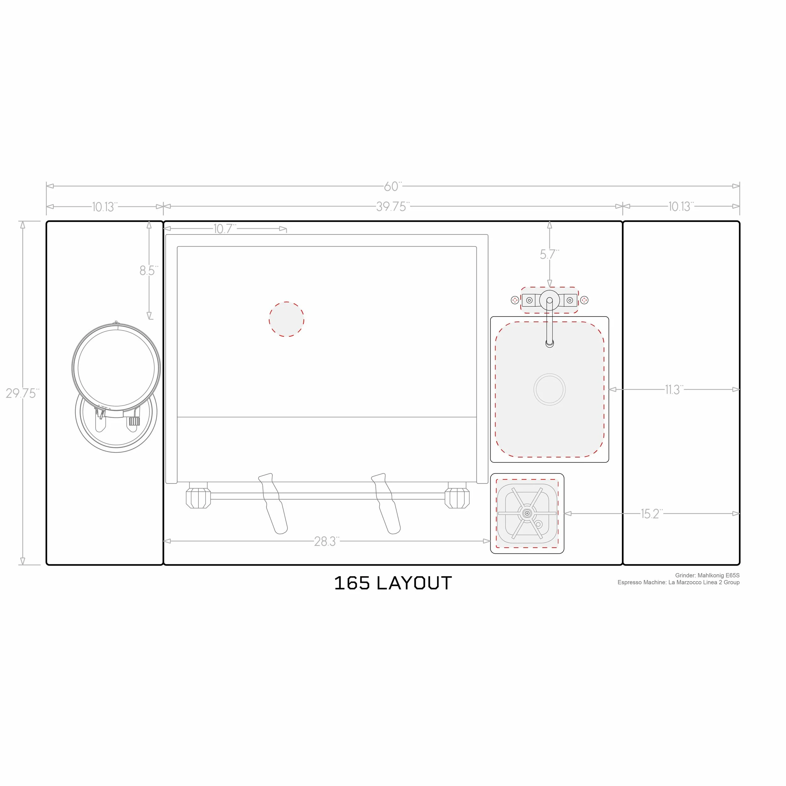 165- rinser and sink/faucet on right, cord/hose, (optimized for La Marzocco 2 group or similar)